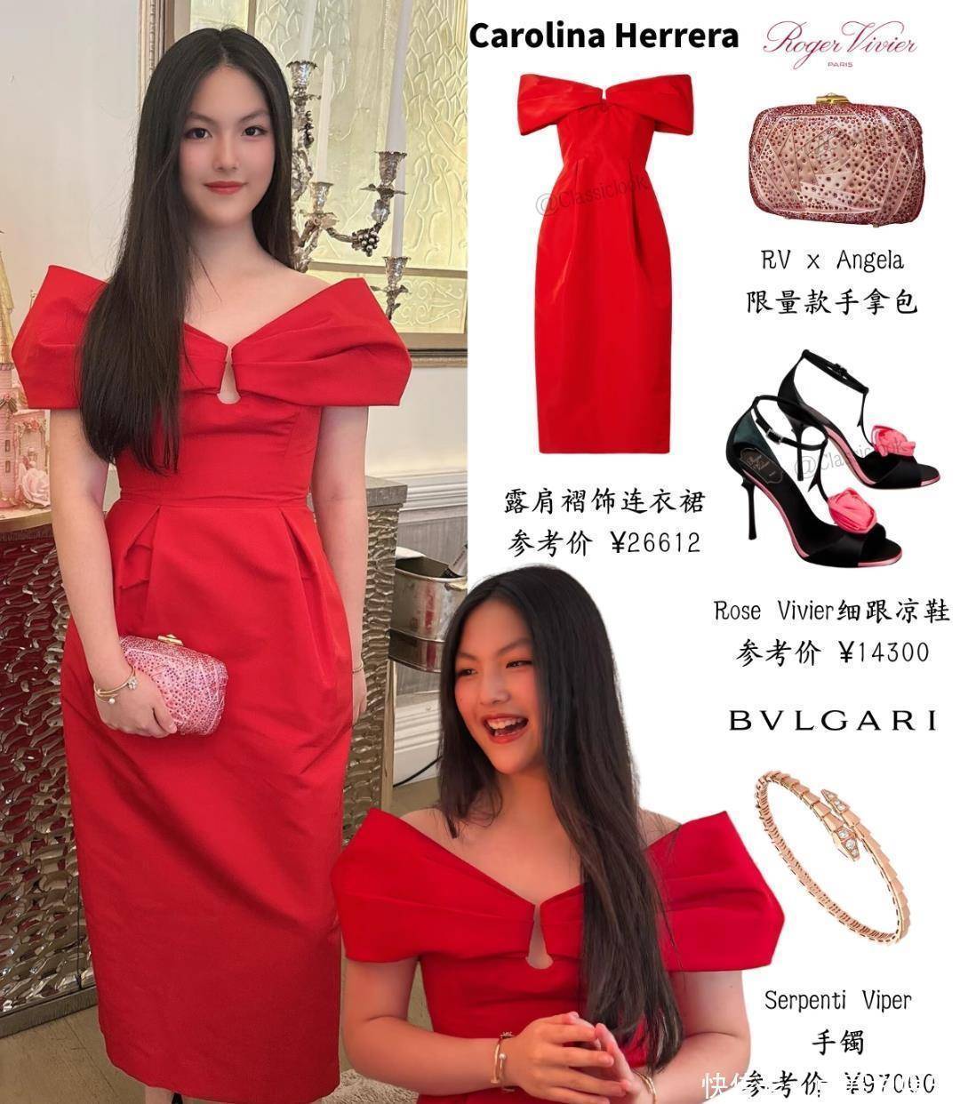 16岁对于女孩来说,是花一样的年纪,李湘为了王诗龄的生日花足心思,精心准备了一套纯美风格的红色礼裙,大概寓意着女儿正在向玫瑰花一样盛开。看一眼价格,不用说,又是花光普通打工人一年薪水的十万级穿搭,26612元的红裙子,14300的高跟鞋,单是一条手镯97000元,就如同王诗龄本人的气质一样,闪耀着高贵而又内敛的金色光芒。